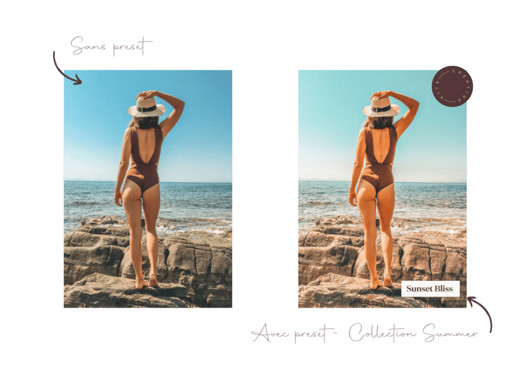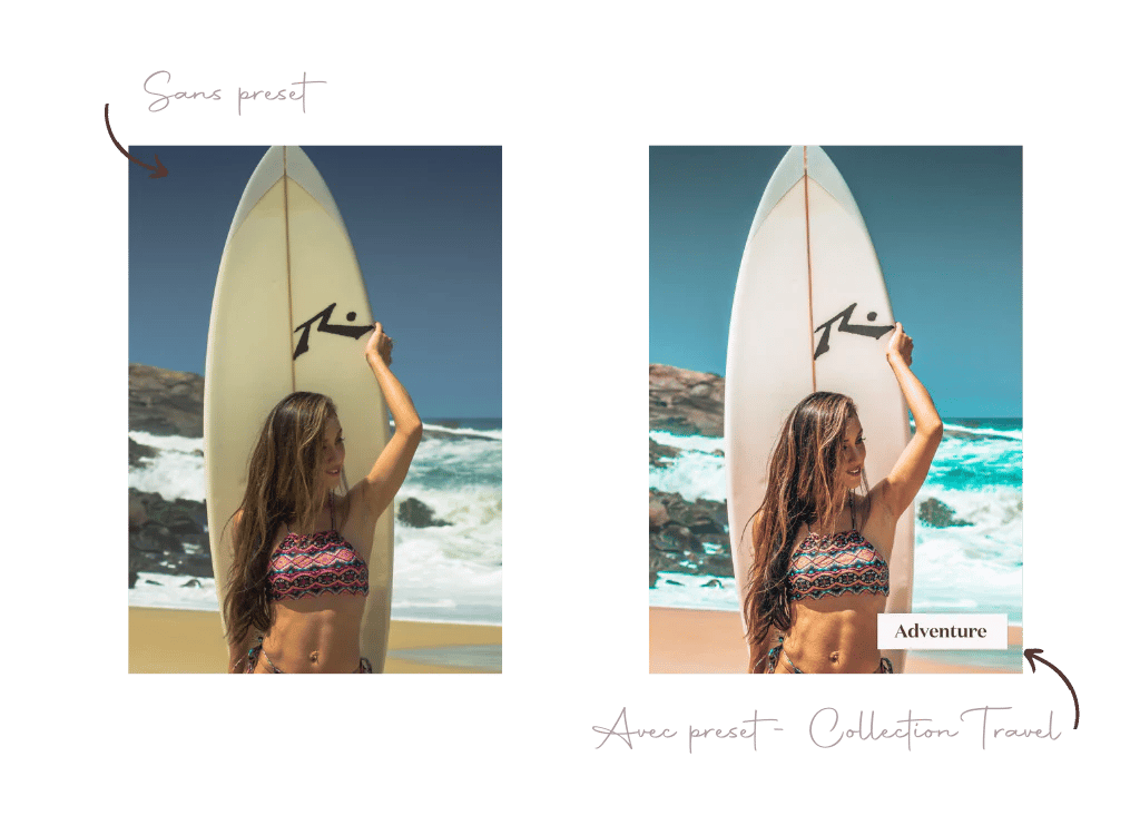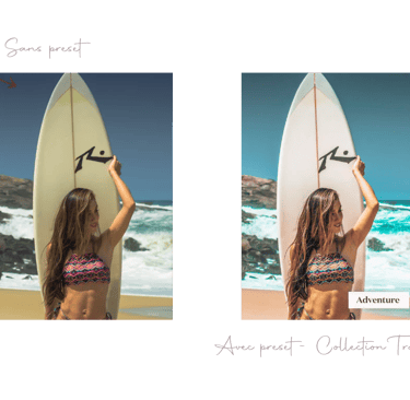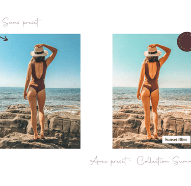 Si tu es plutôt photos de voyages/ vacances, je vous recommande des presets qui apportent des tons plus estivaux et qui subliment l’eau, le ciel et les paysages. Les collections Summer & Travel sont parfaites pour ce genre de photos !