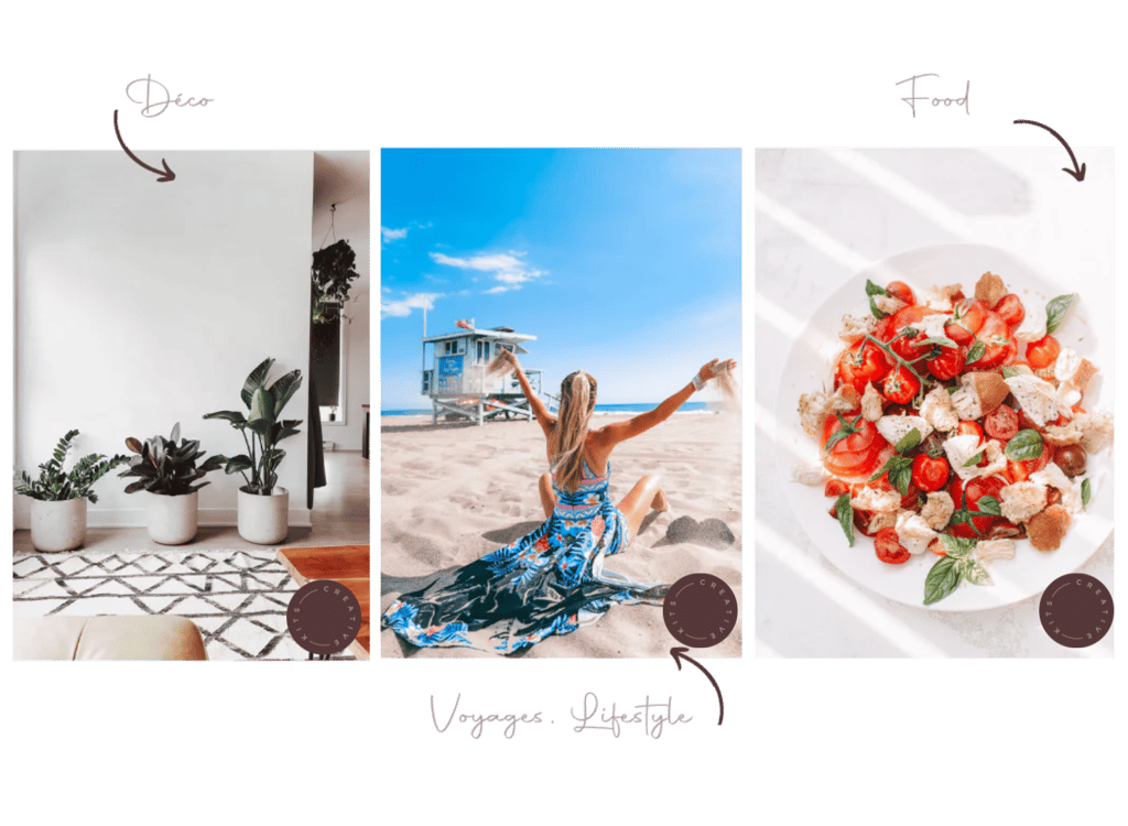Tous les presets ne conviennent pas à tous les types de photos. En effet, il y’a des presets pour chaque type de contenu : photos lifestyle, décoration, food, mode, voyages…. L’idée est donc de réfléchir au contenu que tu souhaites partager quotidiennement !