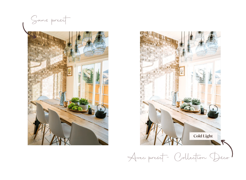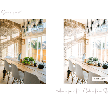 Si tu souhaites publier des photos de décoration d'intérieur, je te conseille des presets plutôt neutres qui ne dénaturent pas les couleurs de bases. Notre Collection de presets spéciale Déco est alors faite pour toi !
