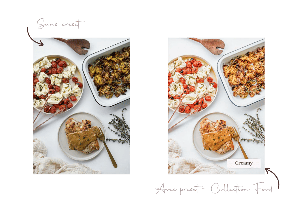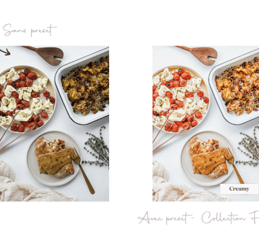 Pour les photos de nourriture, je conseille toujours la collection de presets Food (obviouuus) qui fait très bien ressortir toutes les teintes, couleurs et saveurs en même temps.